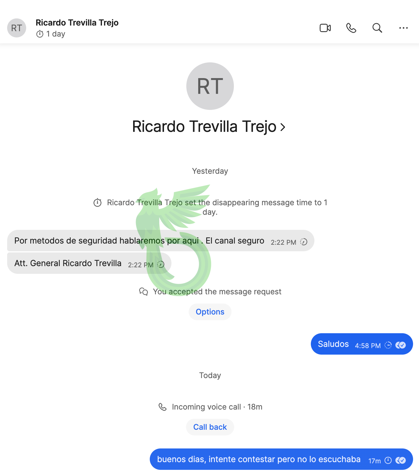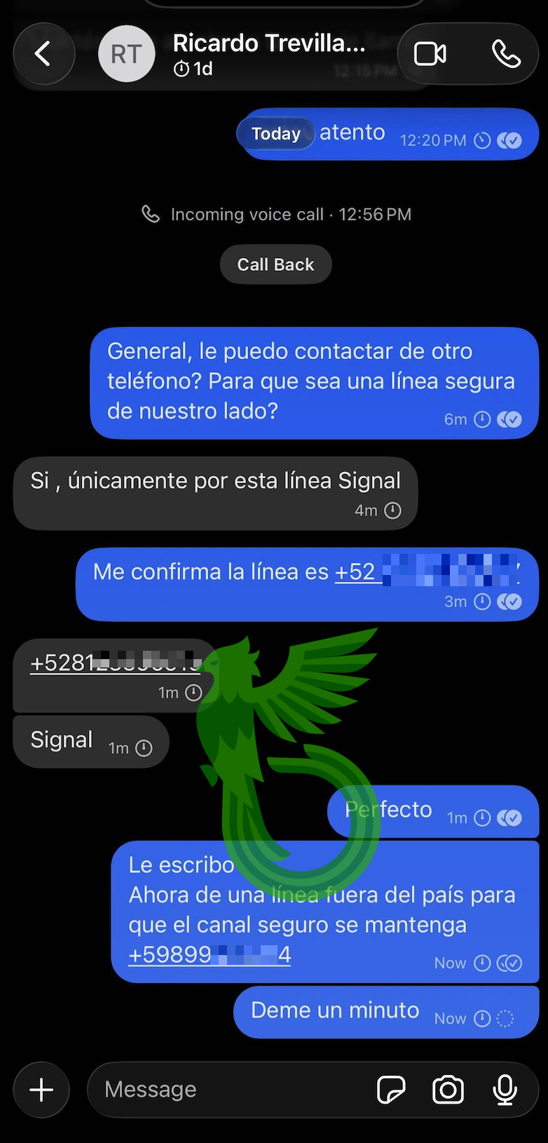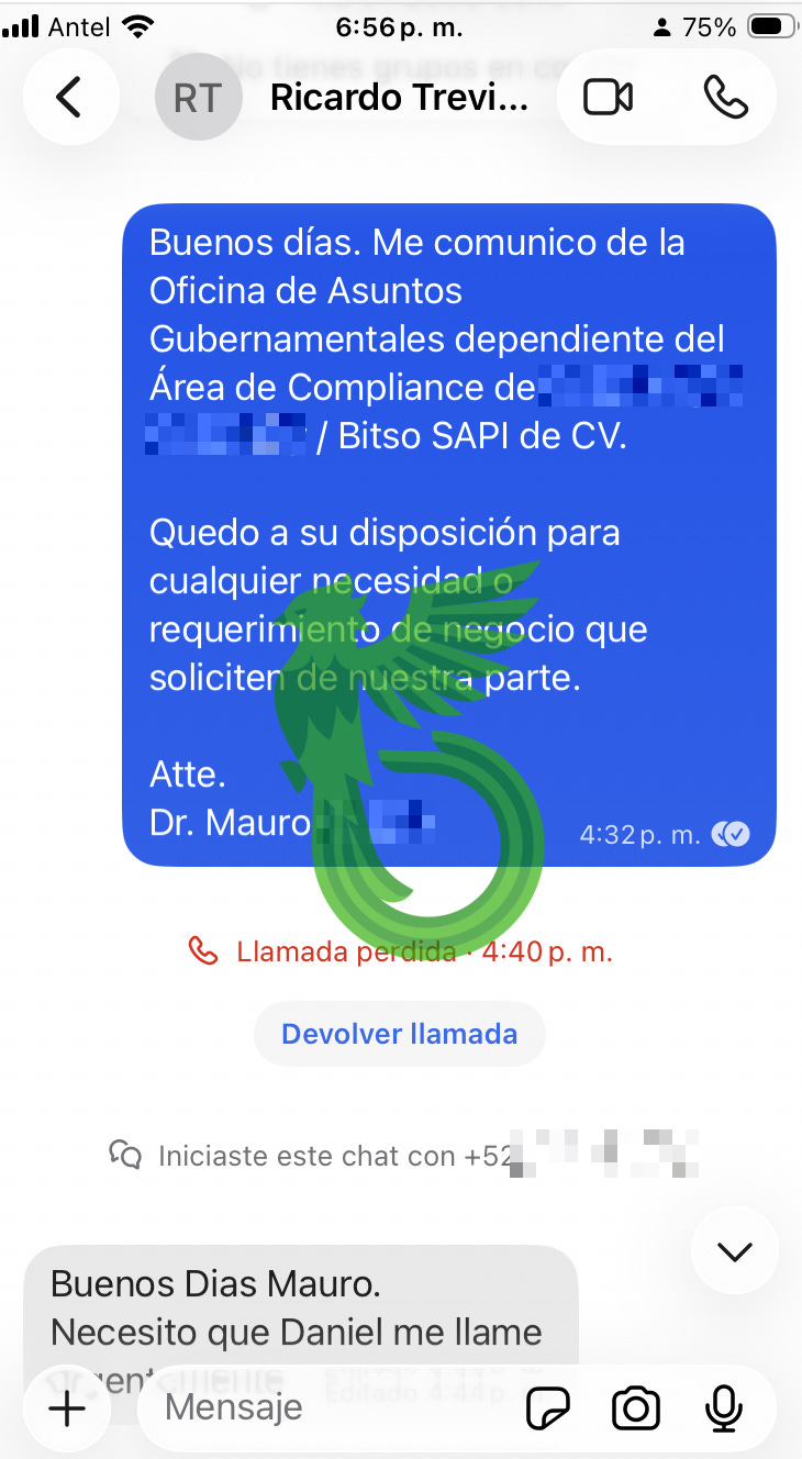 It all started with a call to our CEO from an official number belonging to the Ministry of Foreign Affairs (SRE). They politely asked if he could take a call from the Secretary of Defense. Upon agreeing, the conversation moved first to WhatsApp, then to Signal.