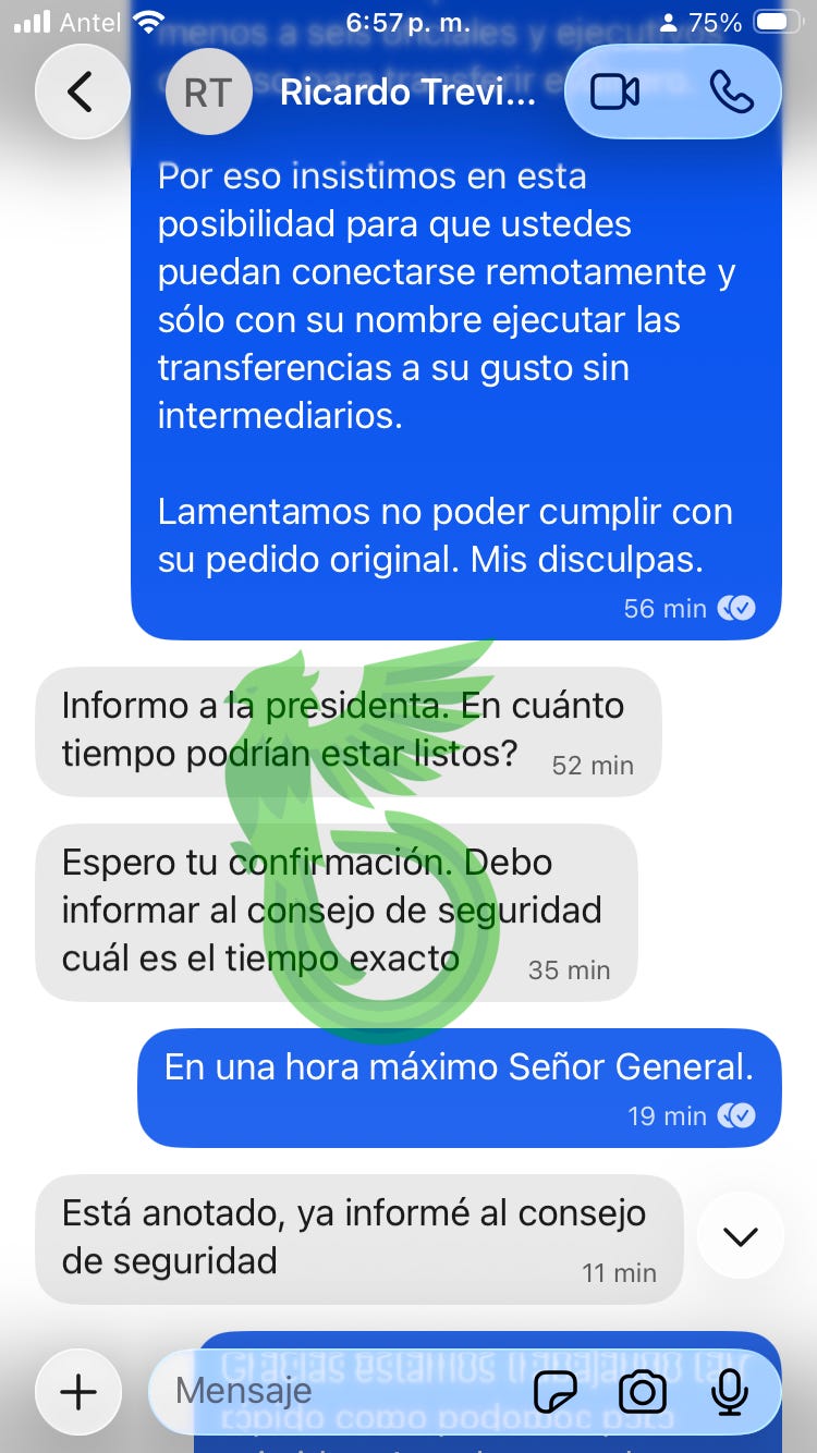 Our first move was to take some weight off our CEO and shift the conversation over to me. I’d handle the presidential crisis while he focused on CEO things, you know, like running LATAM’s number one crypto exchange.