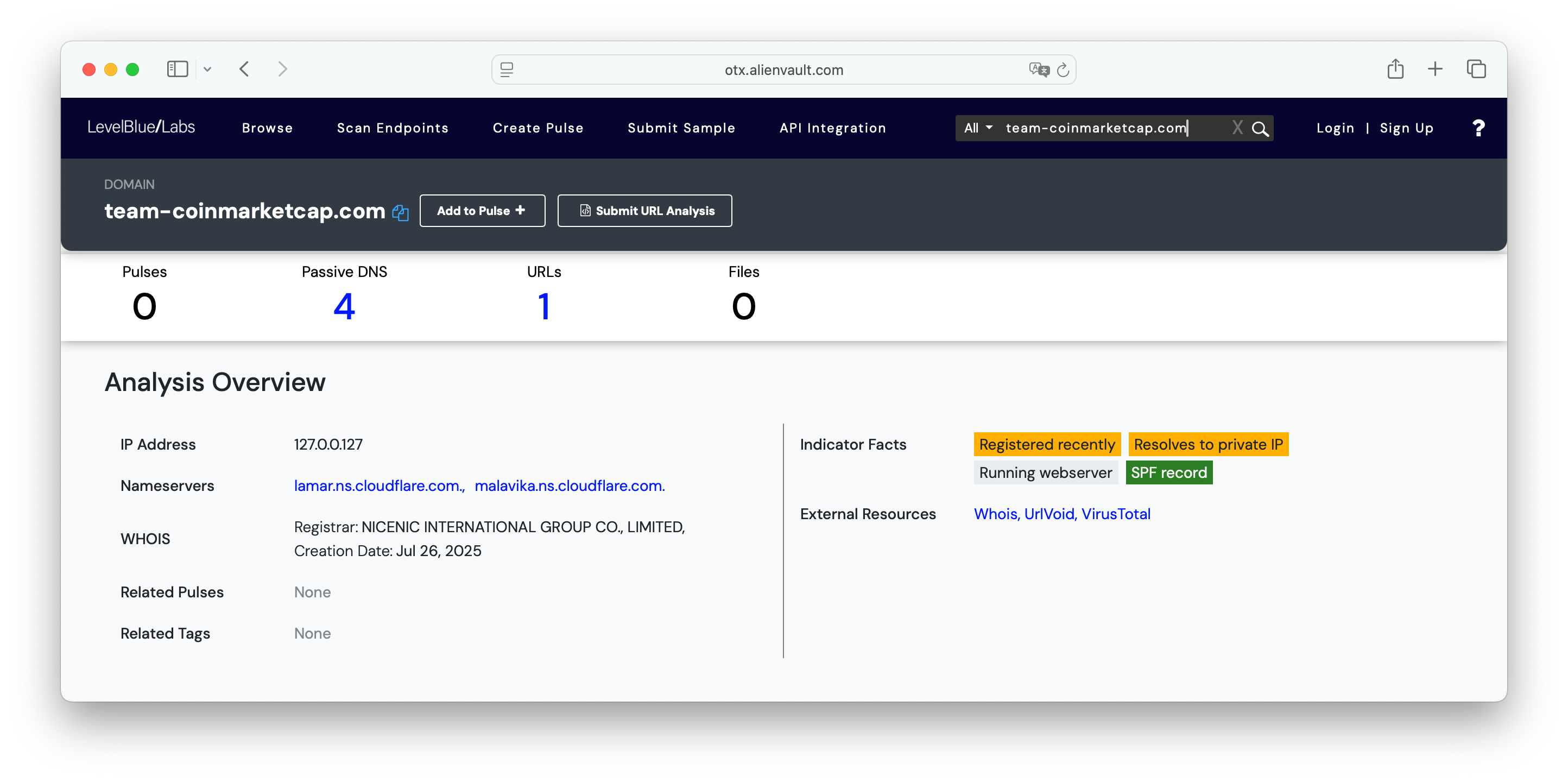 Our first stop is LevelBlue OTX (formerly AlienVault), our favourite open threat intel exchange hub.