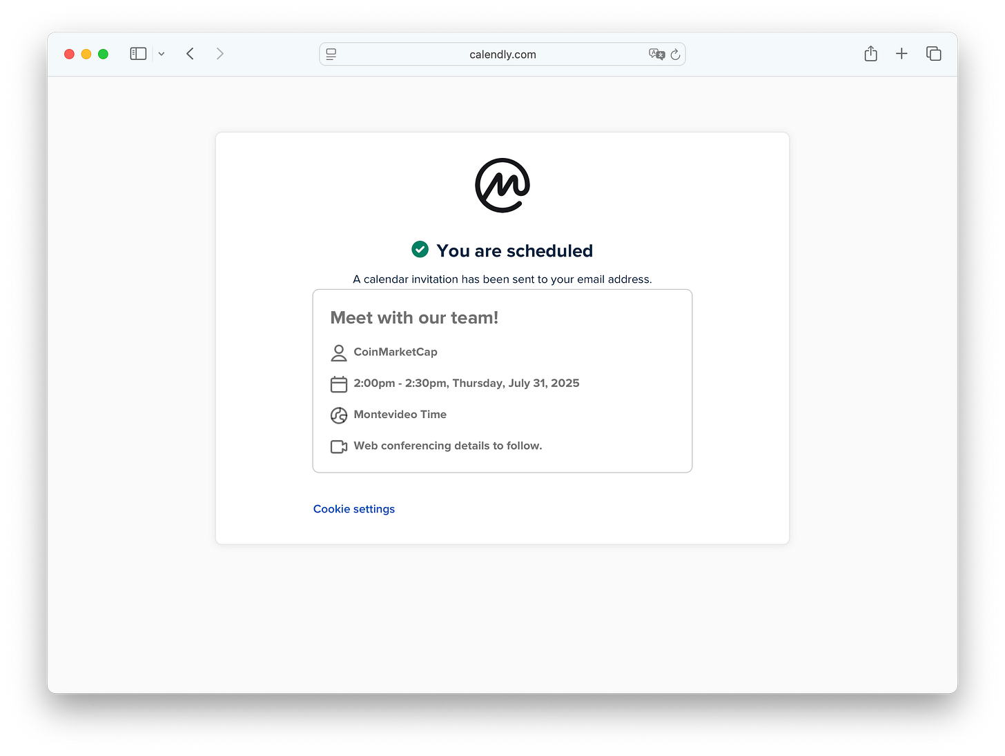 I booked a call via Calendly, where they had set up a fake profile using CoinMarketCap’s branding and naming, logos included.