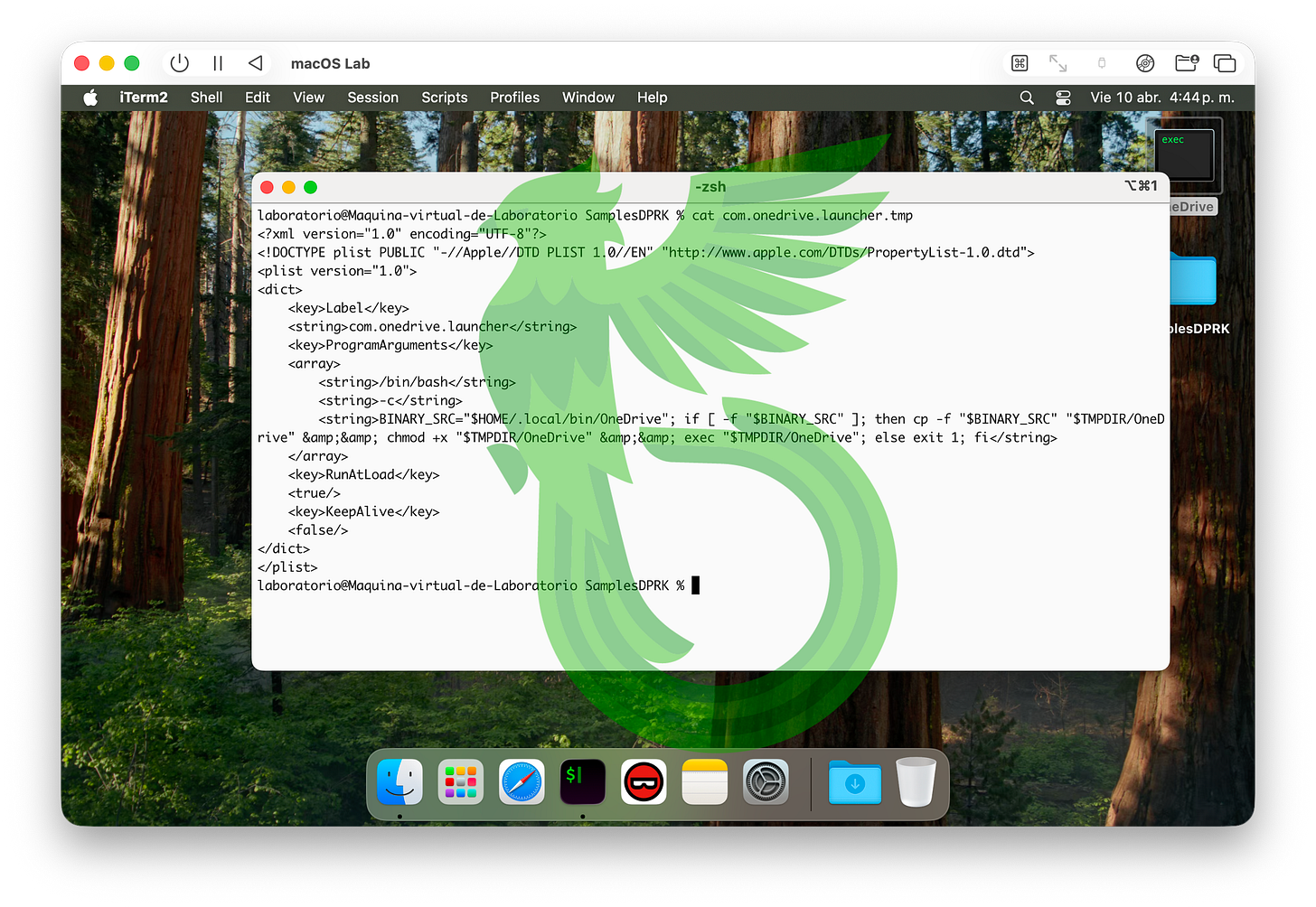 It then creates a LaunchAgent, roughly the macOS equivalent of Windows Services, to maintain persistence by executing OneDrive, which in turn instantiates the previous components on startup. It is also responsible for cleaning up traces and leftovers from the exfiltration process.