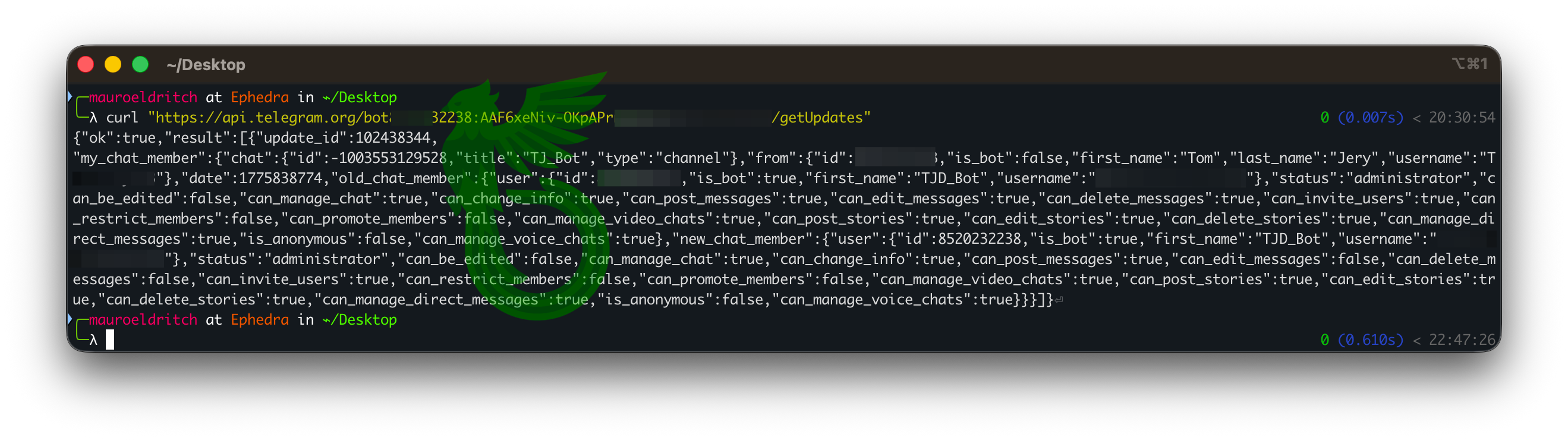 But there’s more! This key allows anyone to identify the bot owner or creator with a simple command like the following: